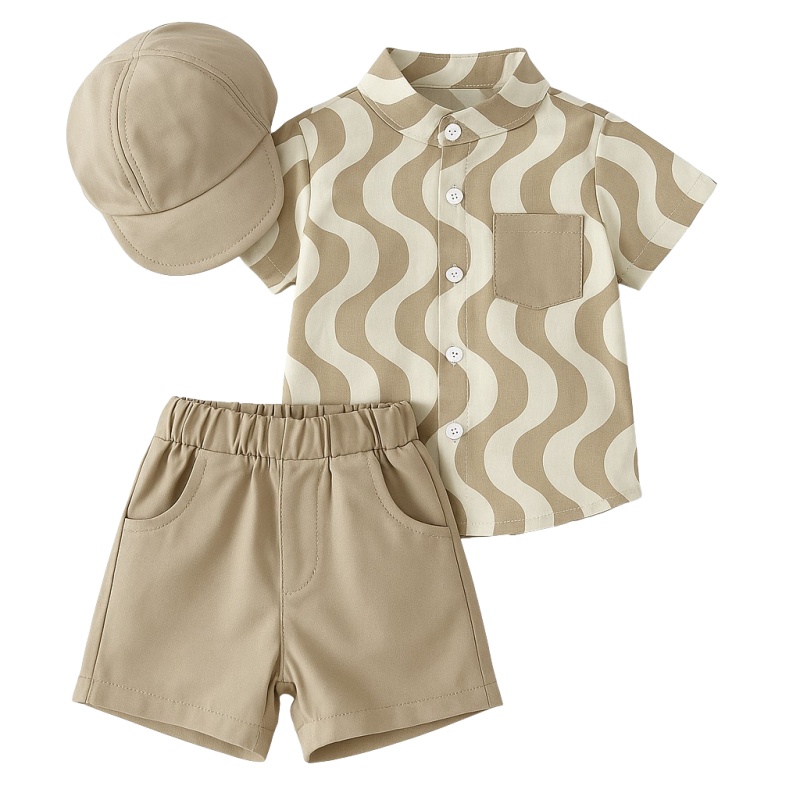 Set jongens beige witte golven